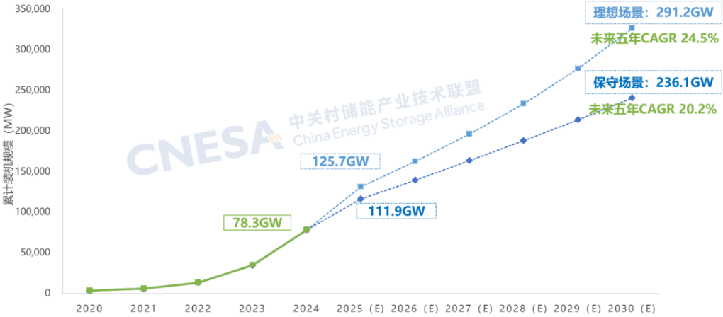展望未來(lái),CNESA 預測,2030 年中國新型儲能累計裝機規模保守場(chǎng)景下將達236.1GW,理想場(chǎng)景下超291GW,未來(lái)五年復合增長(cháng)率超20%。隨著(zhù)沙戈荒大基地、零碳園區、虛擬電廠(chǎng)等新場(chǎng)景拓展,以及材料、結構與智能化技術(shù)協(xié)同創(chuàng )新,新型儲能將在保障電力安全、推動(dòng)“雙碳” 目標實(shí)現中發(fā)揮更核心作用。